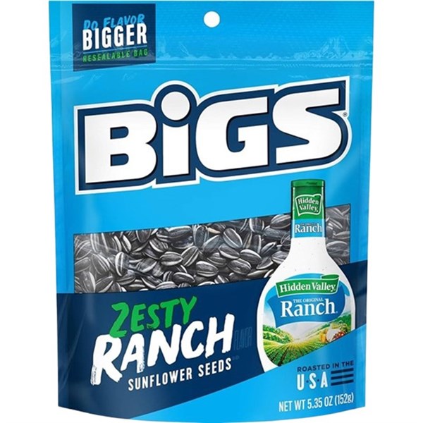 BIGS SUNFLOWER SEEDS ZESTY RANCH PEG BAG 152 G X 12 PACK