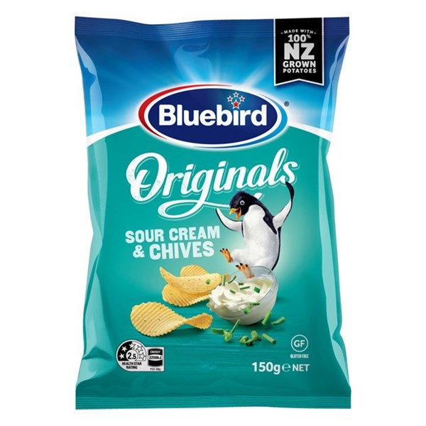BLUEBIRD ORIGINALS SOUR CREAM & CHIVES 150G X 12 PACK