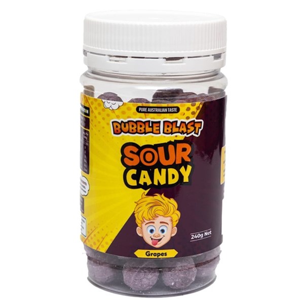 BUBBLE BLAST SOUR CANDY GRAPES 200G X 6 PACK