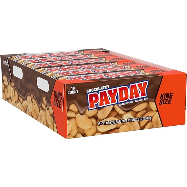 CHOCOLATEY PAYDAY PEANUT CARAMEL KING SIZE BAR 87G X 18 PACK