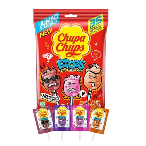 CHUPA CHUP FACES FLAT LOLLIPOPS 210G X 5PK