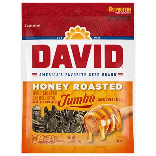 DAVID HONEY ROASTED JUMBO SUNFLOWER SEEDS 149G X 12 PACK