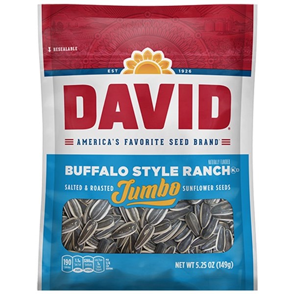 DAVID SUNFLOWER SEED BUFFALO STYLE RANCH PEG BAG 149G X 12 PACK