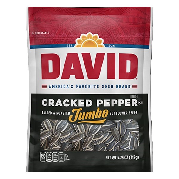DAVID SUNFLOWER SEED CRACKED PEPPER PEG BAG 149G X 12 PACK