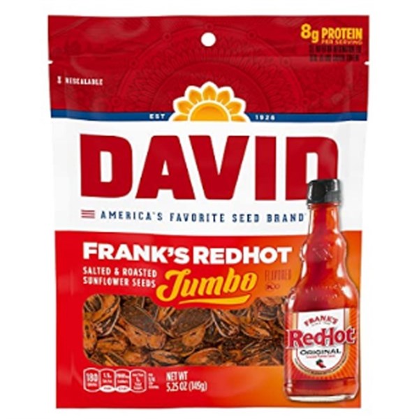 DAVID SUNFLOWER SEED FRANKS RED HOT PEG BAG 149G X 12 PACK