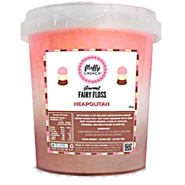 FLUFFY CRUNCH FAIRY FLOSS NEAPOLITAN 50G X 12 JARS