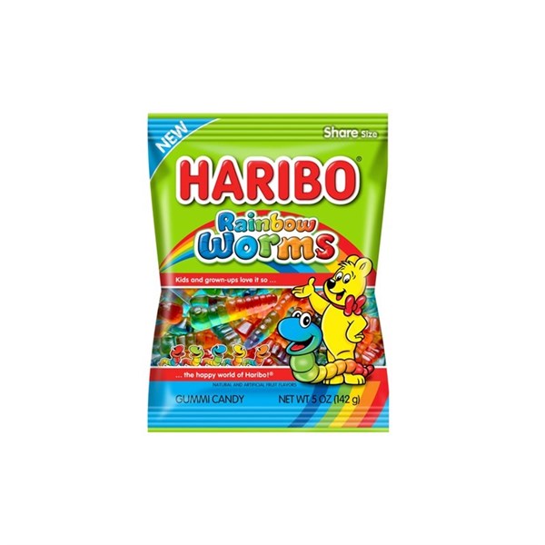 HARIBO PEG BAG RAINBOW WORMS 141G, 12PK