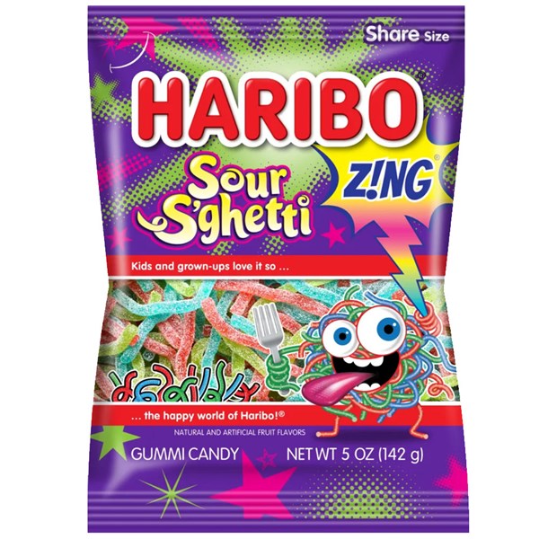 HARIBO ZING SOUR S'GHETTI PEG BAG 141G X 12 PACK