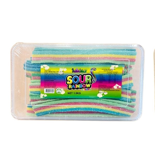 JUICY JELLY SOUR RAINBOW STRAPS TUB 1.5KG
