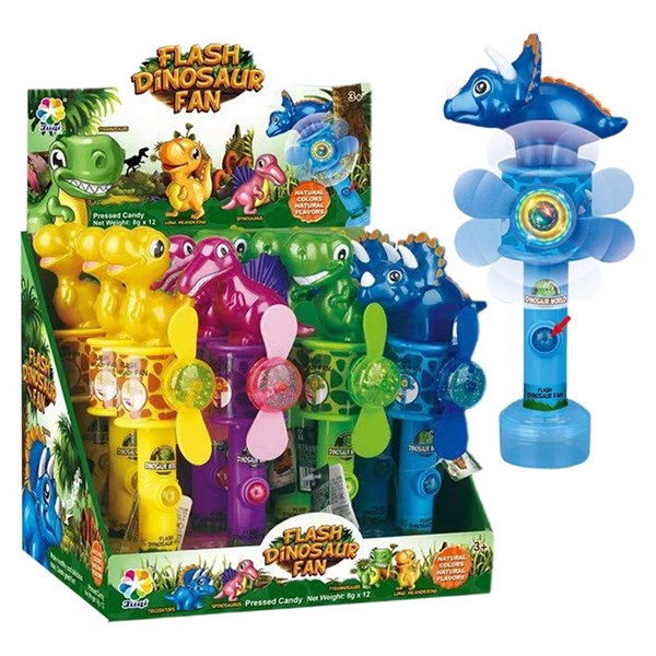 KIDSFRENZY FLASH DINOSAUR FAN CANDY 8G X 12 PACK