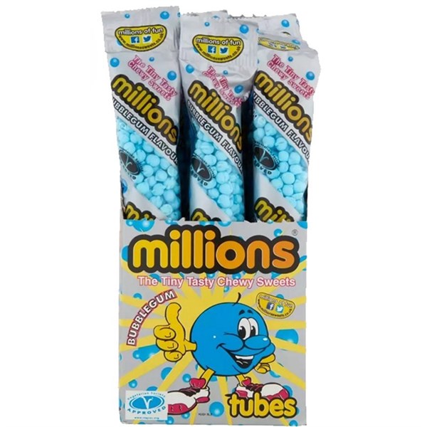MILLIONS BUBBLE GUM TUBES UK 55G X 12 PACK
