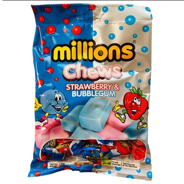 MILLIONS CHEWS STRAW/BUBBLE UK 120G X 12 PACK