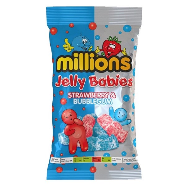 MILLIONS JELLY BABIES STRAW/BUBBLE UK 190G X 10 PACK