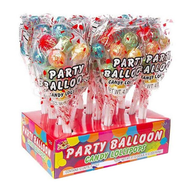PARTY BALLOON CANDY LOLLIPOPS 120G X 12PK