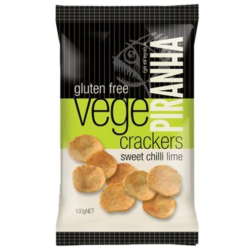 PIRANHA VEGE CRACKERS SWEET CHILLI LIME 100G X 12 PACK