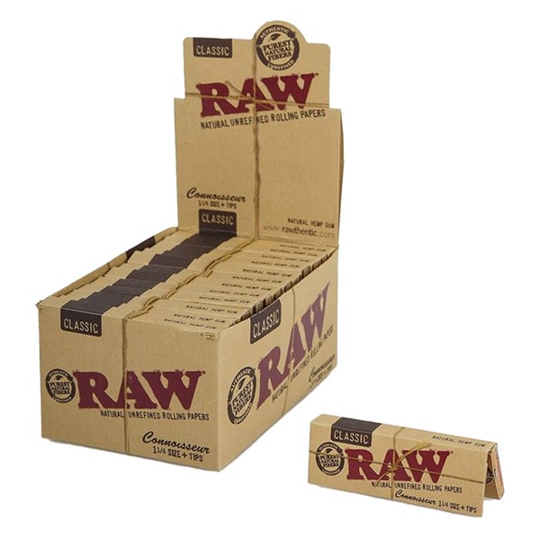 RAW CLASSIC ROLLING PAPERS (1 1/4) SIZE + TIPS 24 PACK