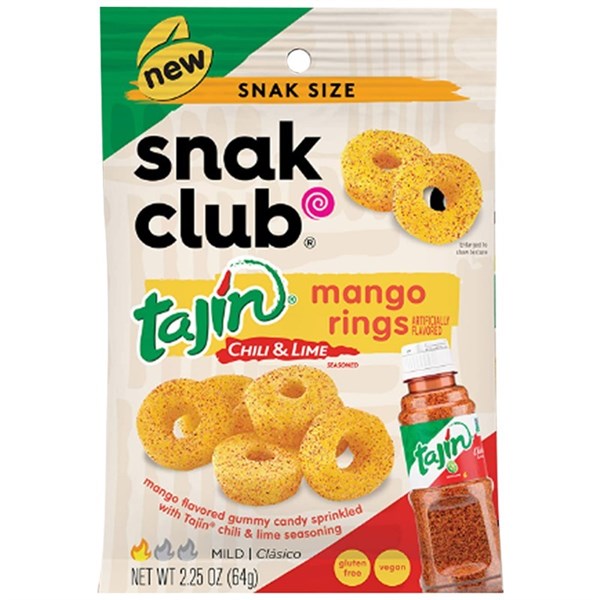 SNACK CLUB TAJIN MANGO RINGS PEG BAG 64G X 12 PACK