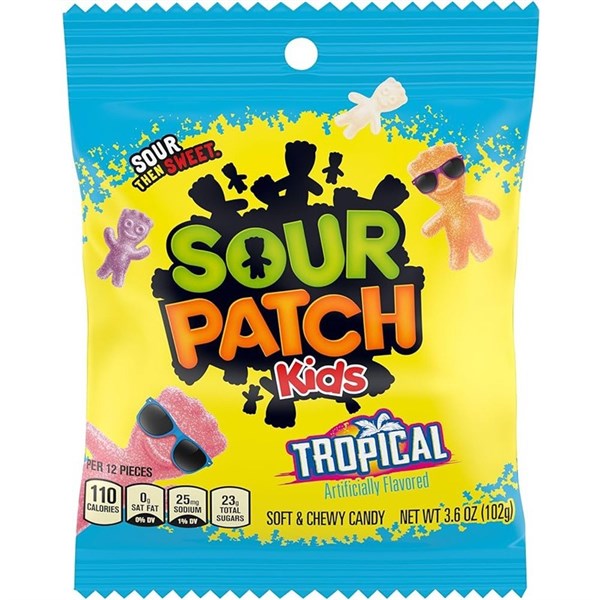 SOUR PATCH KIDS TROPICAL PEG BAG 102G X 12 PACK