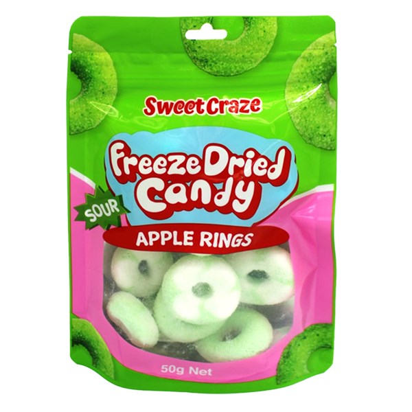SWEETCRAZE FREEZE DRIED CANDY SOUR APPLE RING 50G X 12