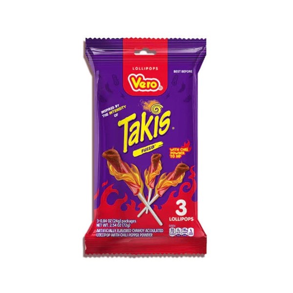 TAKIS VERO CHAMOY LOLLIPOPS 72G, 6PK