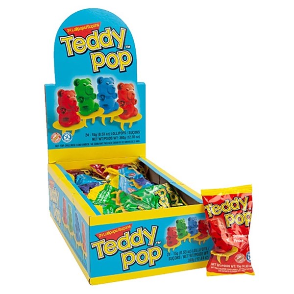 TEDDY POP RING LOLLIPOP ASSORTED 15G X 24 PACK