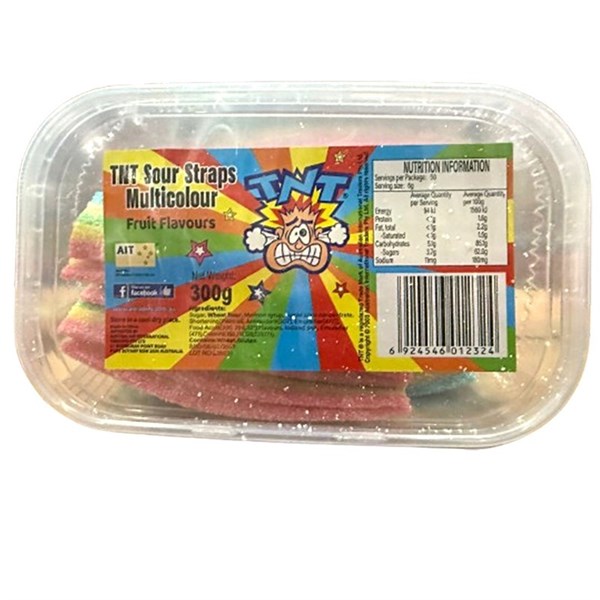 TNT SOUR STRAPS MULTICOLOUR 300G X 9
