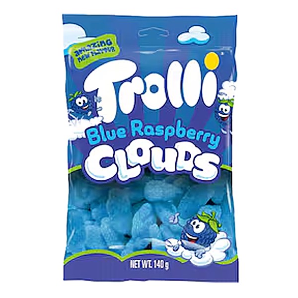 TROLLI BLUE RASPBERRY CLOUDS PEG BAG 140G X 8