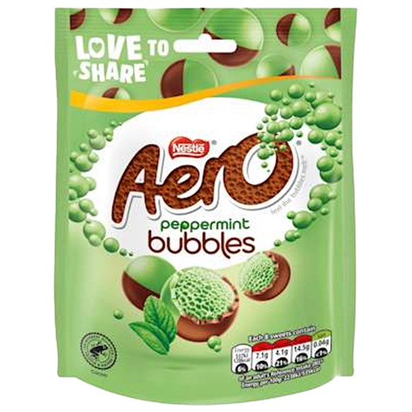 UK NESTLE AERO PEPPERMINT BUBBLES PEG BAG 92G X 8 PACK