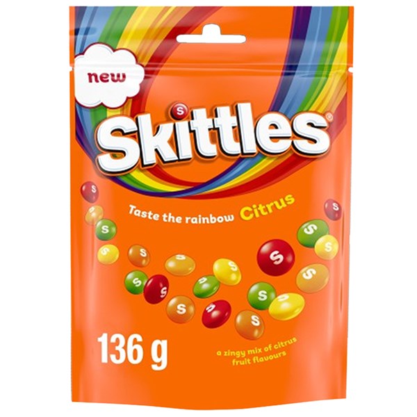 UK SKITTLES CITRUS POUCH 136G X 15 PACK