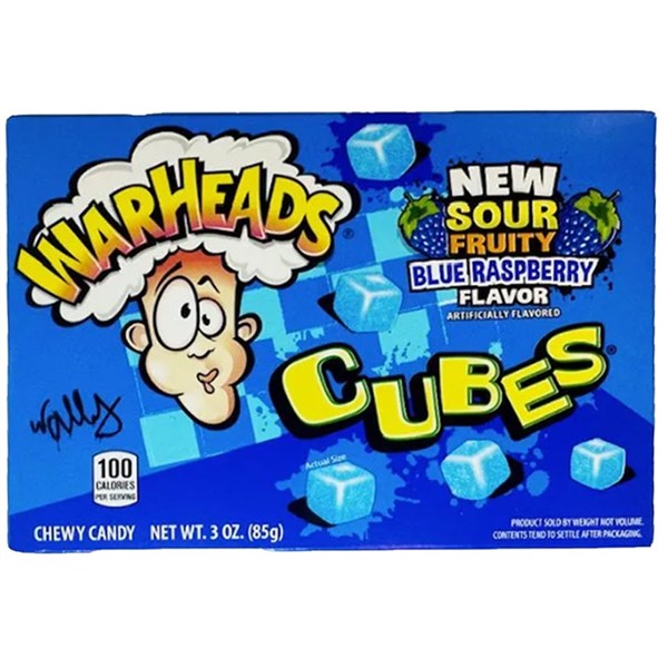 WARHEADS BLUE RASPBERRY CUBES THEATRE BOX 85G X 12 PACK