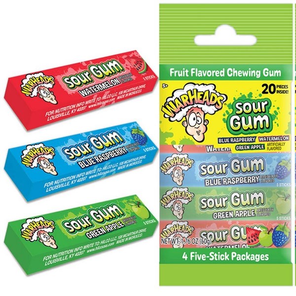 WARHEADS SOUR GUM 4PK PEG BAG 50G X 10 PACK