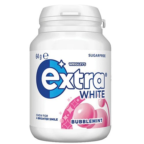 WRIGLEY'S EXTRA WHITE BUBBLEMINT BOTTLE 64G X 6 PACK