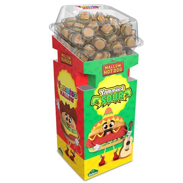 YAMMIEZ SOUR MALLOW HOT DOG FLOOR STAND 50G X 100PC