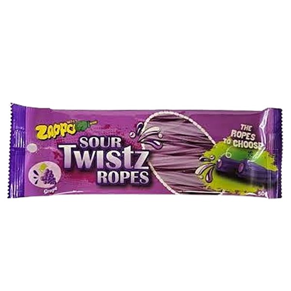 ZAPPO SOUR GRAPE ROPES 50G X 12 PACK
